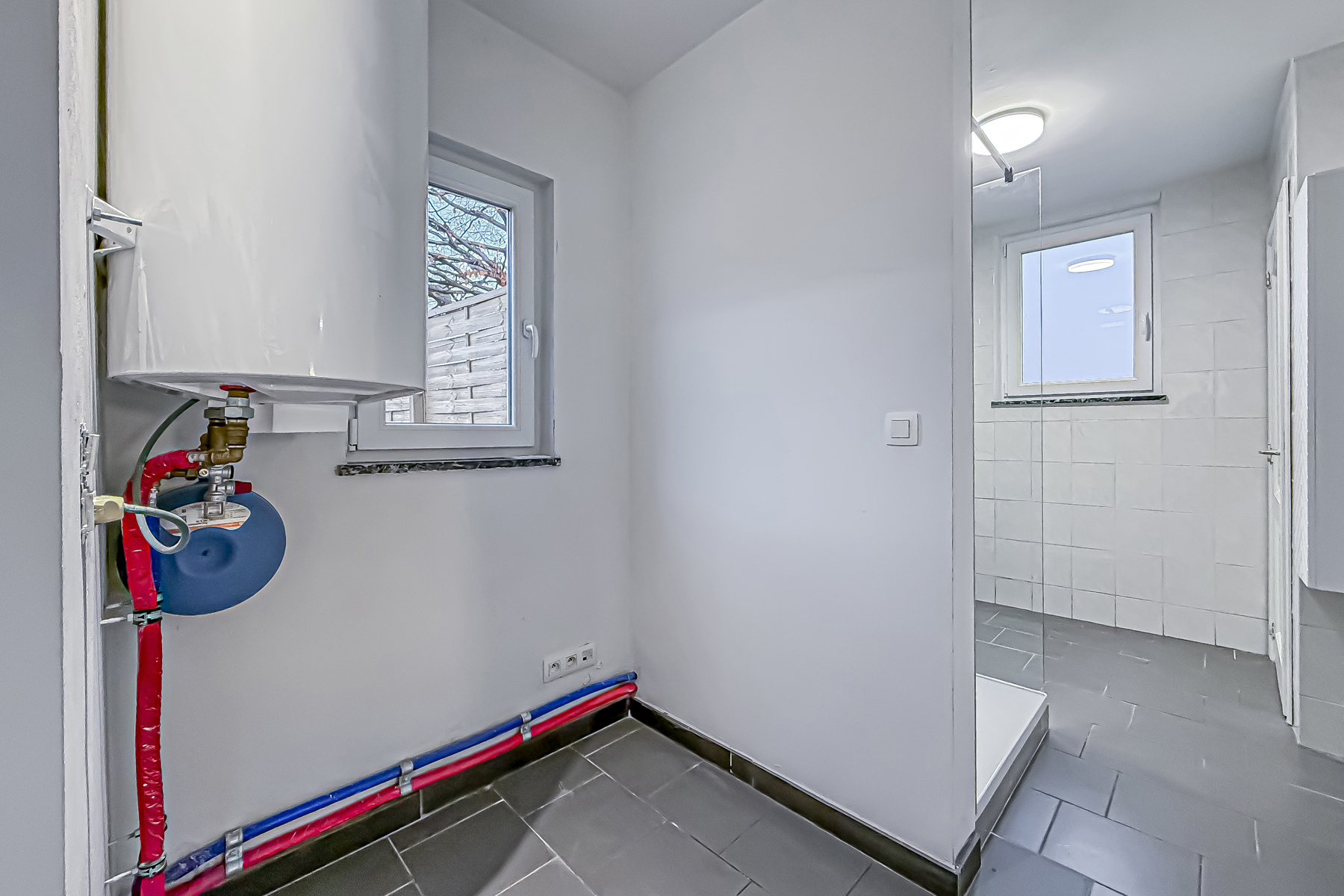 D’un point de vue technique, le bien dispose de compteurs individuels, de nouveau châssis double vitrage PVC, d’un nouveau système de chauffage via pompe à chaleur air/air, d’un nouveau boiler électrique, d’une électricité conforme et d’un PEB E !