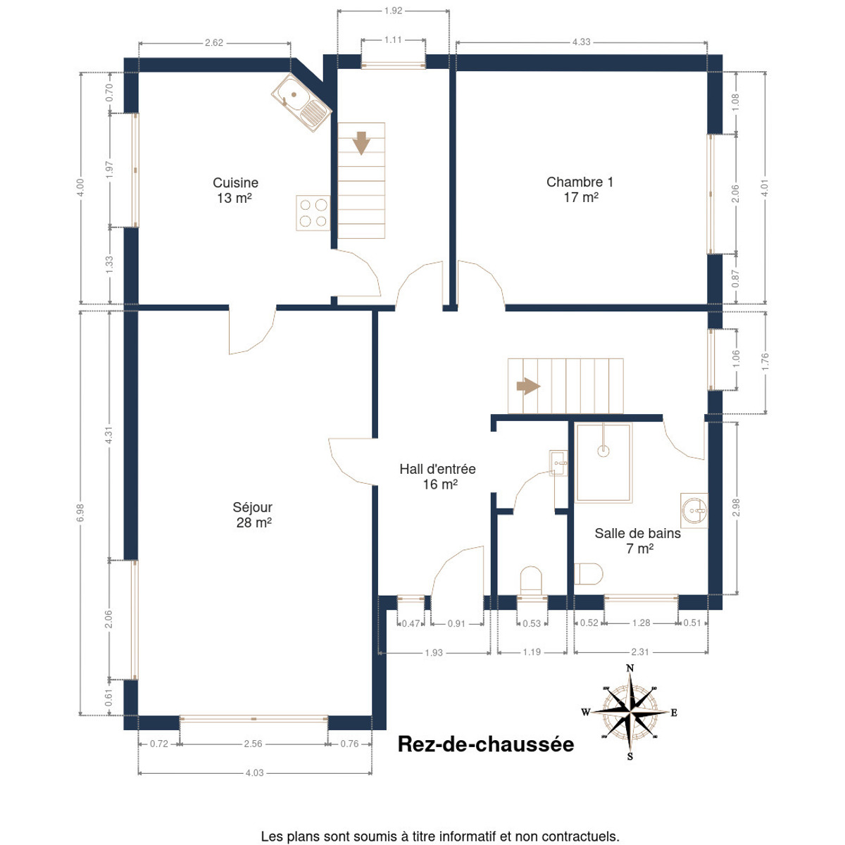 Au rez-de-chaussée, vous serez accueilli par un vaste hall d’entrée avec WC séparé, menant vers un séjour lumineux, une cuisine équipée, ainsi qu’une chambre de plain-pied. Vous y trouverez également une salle de douche récemment rénovée en grande partie.