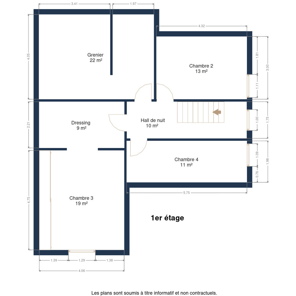 À l’étage, la maison dispose de trois belles chambres, ainsi qu’un grenier aisément aménageable en cinquième chambre ou en espace polyvalent selon vos besoins.